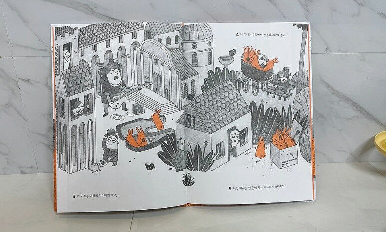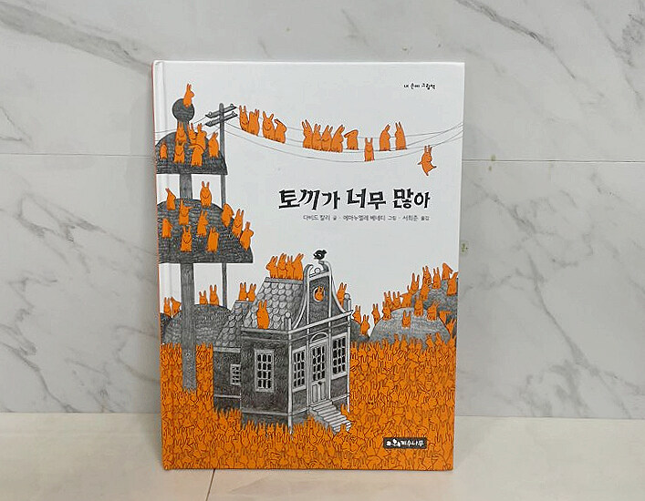 주황색과 흑백의 대비, 다소 묵직한 주제를 재미있는 그림과 산뜻한 색감으로 표현한 그림책이죠?