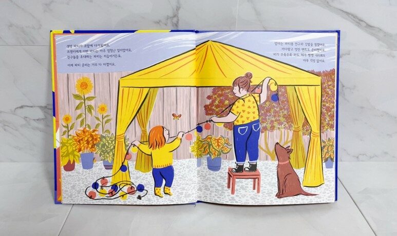 온 가족이 나서서 파티용 텐트도 치고, 케이크도 만들고, 예쁜 손글씨로 쓴 초대장도 준비했습니다.