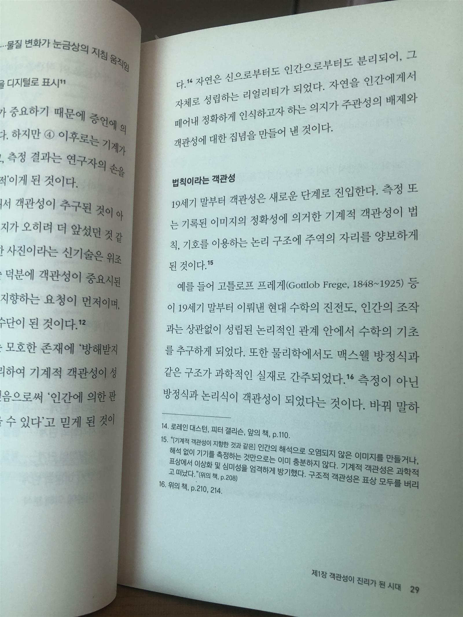 예를 들어, 1장에서부터 객관성이 어떻게 시대 정신이 되었는지를 차근차근 설명하고,
