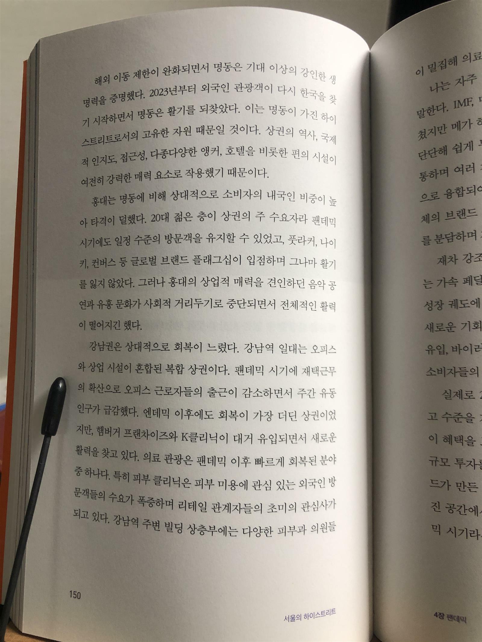 그 결과, 한국 최고의 상권에 대한 이야기이지만, 현장의 모습, 최신 트렌드, 경제적 수치 등 피상적인 설명만 하는 것이 아니라, 그 역사문화적 유래 및 맥락, 현실적 경제주체들의 권력 구조, 각 지역의 정체성 등 본질적인 서술까지 해내고 있다.