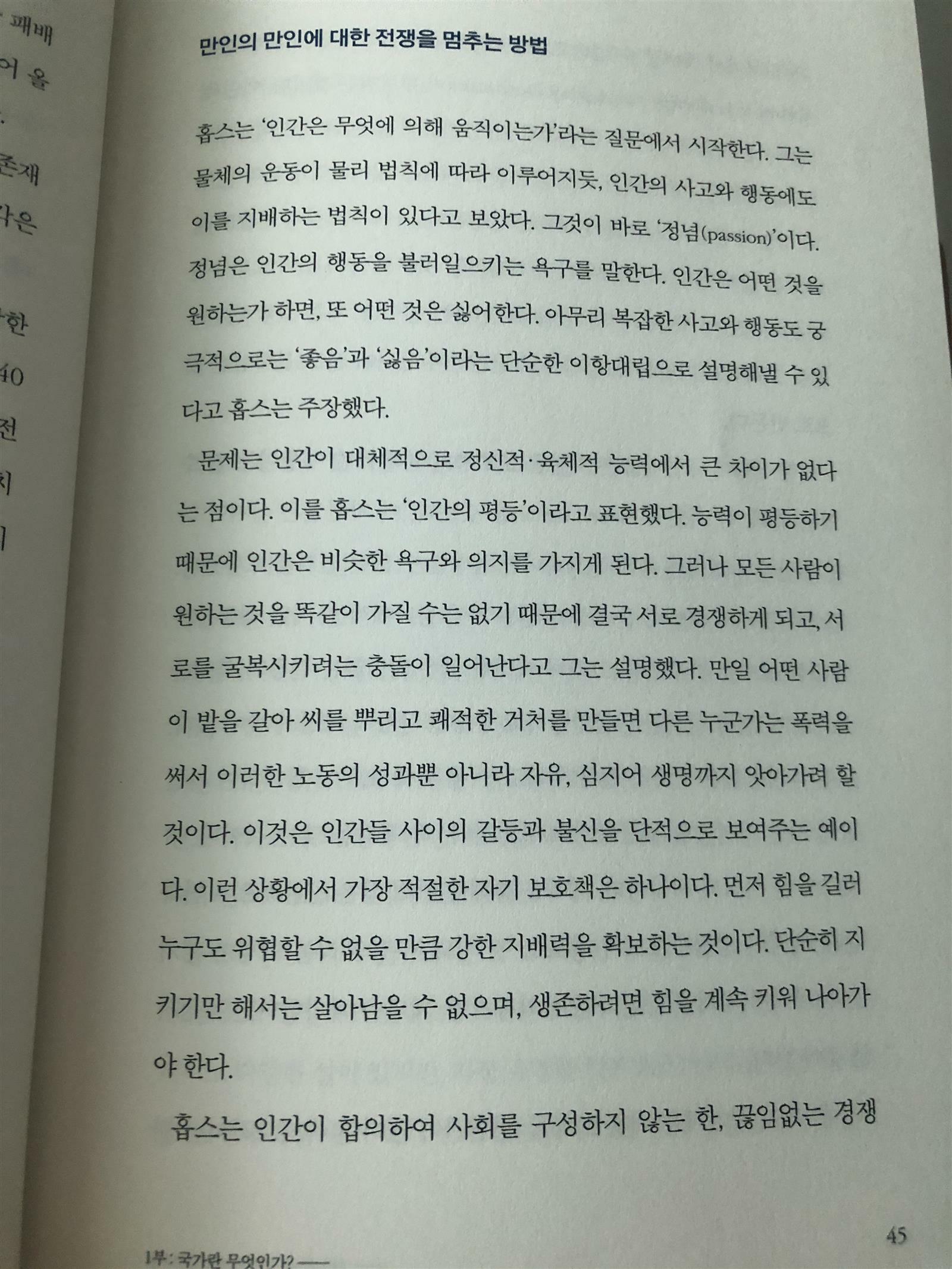 특히 1부는 '국가란 무엇인가'에 대해 서술한 내용으로 이 책에서 가장 빼어난 부분이다.