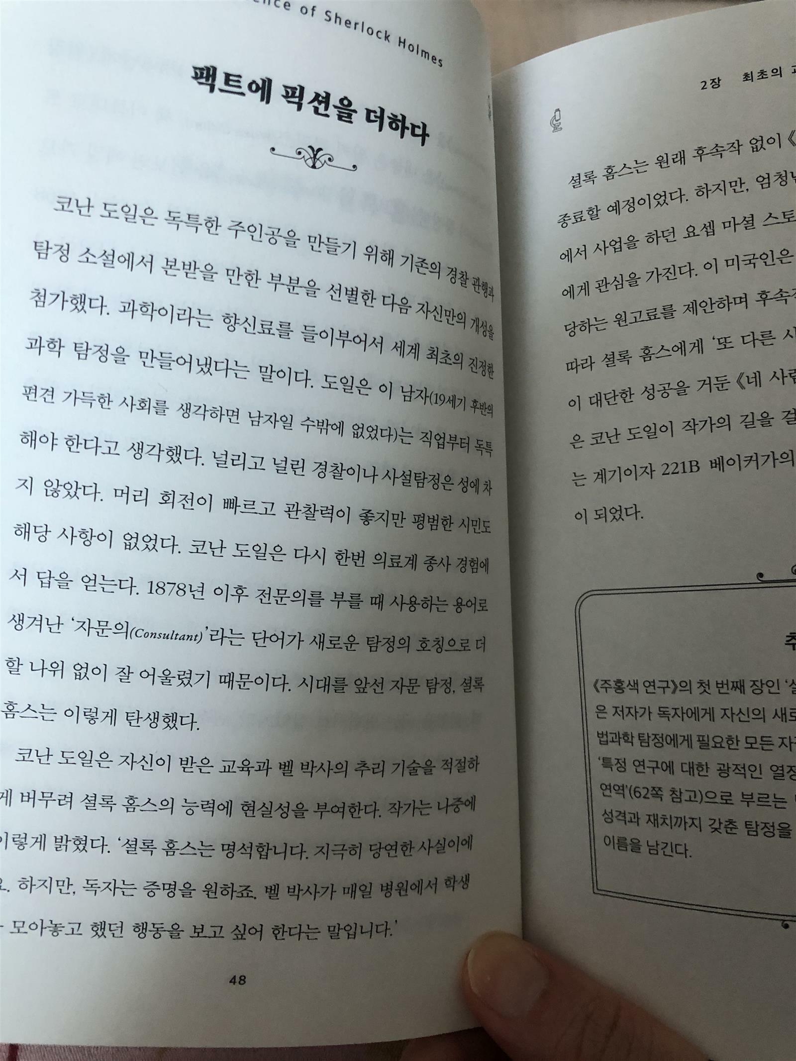 이 책은 그런 과학과 홈스, 그리고 홈스와 코난 도일의 관계에 대한 이야기이다