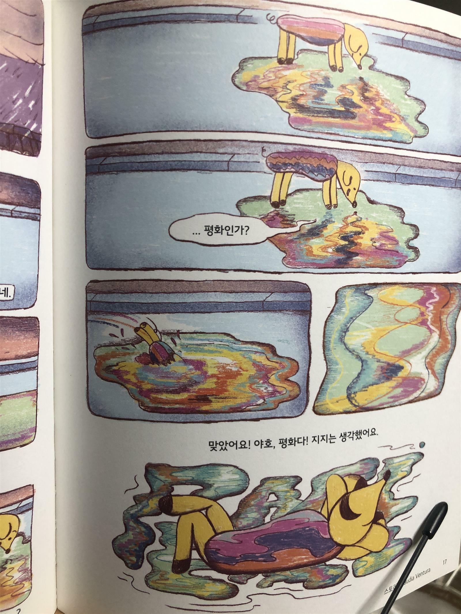 가장 눈에 띄는 것은 화려한 색상들과 예술적인 일러스트들이다.