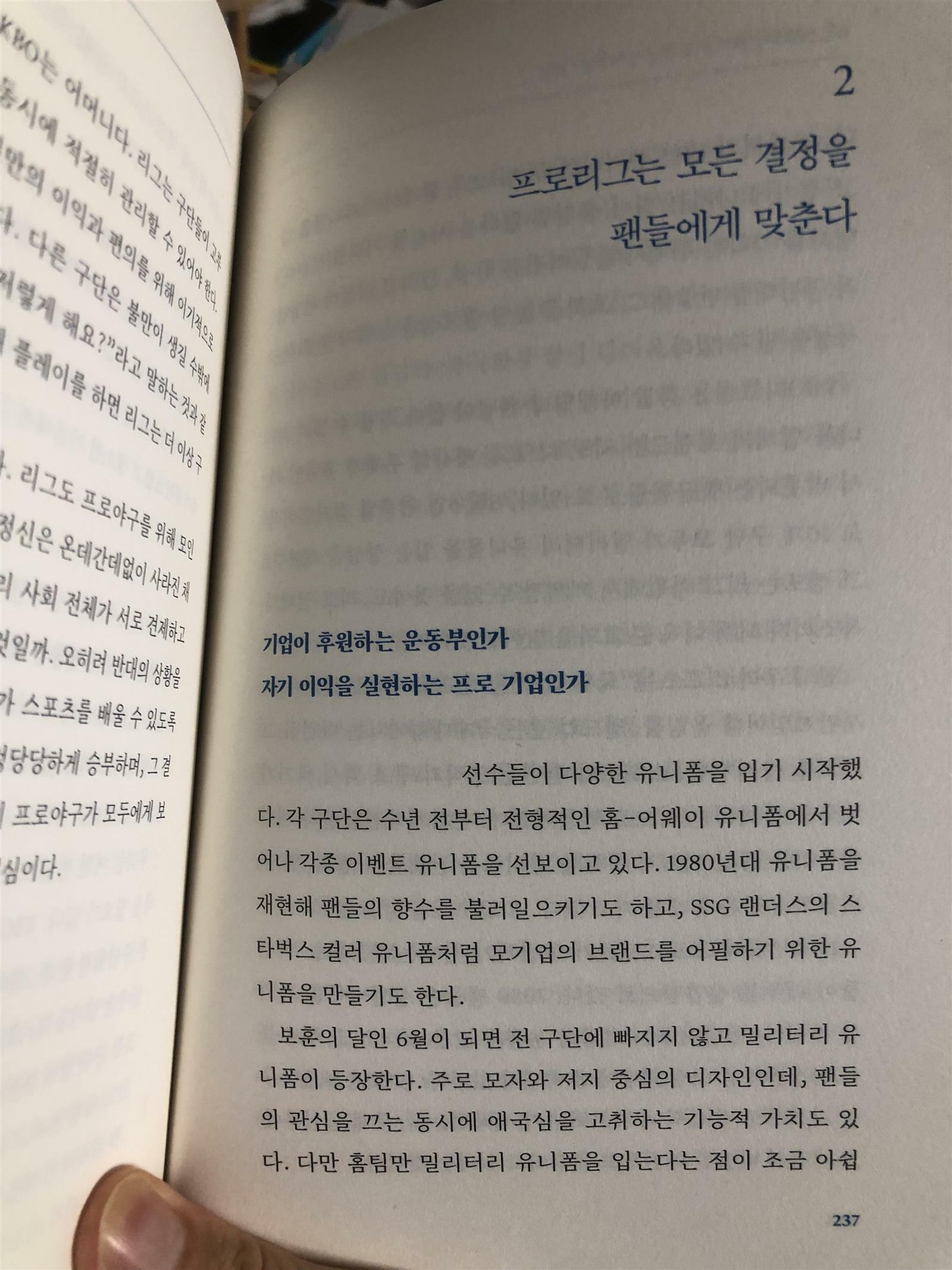 더 나아가, 이런 기조는 목차까지 이어져, 선수, 감독, 구단, 리그, 팬, 파트너라는 명료하고 강렬한 챕터들을 이룬다.
