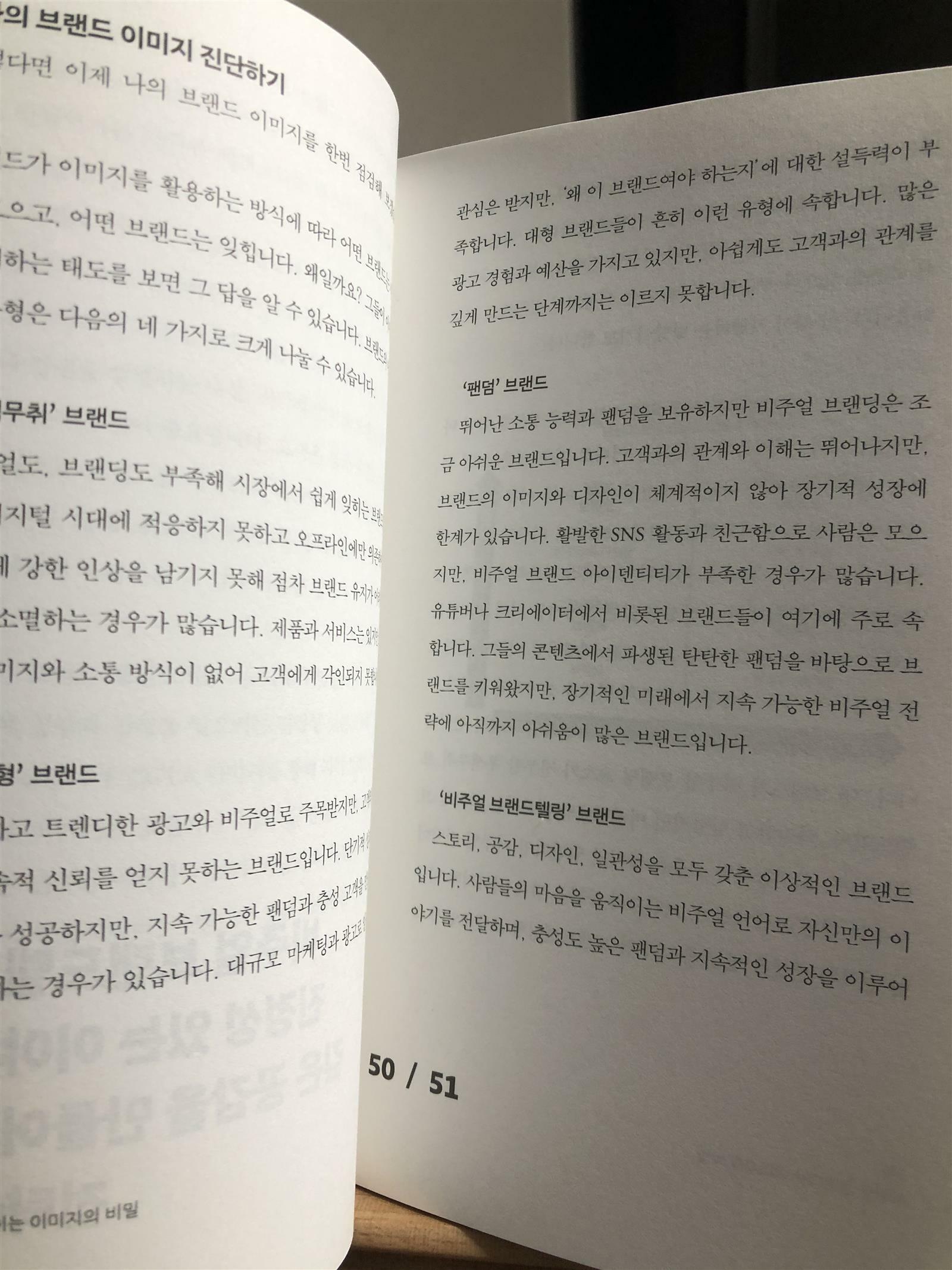 특히 이미지의 스타일을 사전 계획을 세워 일관성 있게 가져가야 한다는 내용, 이미지 시스템을 만들면 브랜드 전략의 지속성을 획득할 수 있다는 내용이 새롭고도 의미 있다.