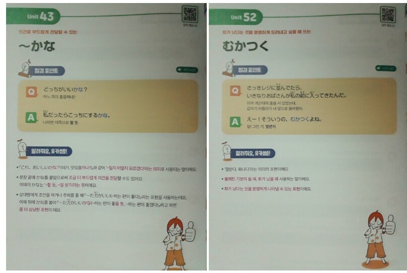 자막 이야기가 나왔으니 조금 더 말해보면 물론 자막을 만들 정도라는 건 기본적인 일본어 실력은 있는 거지만 그중에는 어색한 번역이 상당히 많은 것도 사실이다. 이상한 번역은 앞서 말했던 교과서에서는 알려주지 않는 진짜 일본어 표현들에 나왔던 단어나 표현의 확장된 의미를 폭넓게 사용하지 않는 경우와 다듬어지지 않은 딱딱한 교과서적인 해석인 경우가 그렇다. 다듬어지지 않은 해석이라는 건 설명하기가 조금 애매한데 가령 ~とか의 경우 무조건 라든가를 붙인다던지, ~かな는 ~이려나로 なるほど는 과연. 이렇게 딱 사전적인 형태로 직역하는 경우가 정말 많다. 틀린 건 아니겠지만 역시 그런 식으로 번역을 하면 상당히 어색하게 느껴진다. 파트3에서는 사전적인 직역의 틀을 벗어나서 네이티브처럼 말할 수 있는 스무스한 표현을 배워본다. 파트1에서 3까지 어느것 할 것 없이 전부 실용적이고 원어민적인 살아있는 표현을 배울 수 있어서 아주 좋은 공부가 된다.