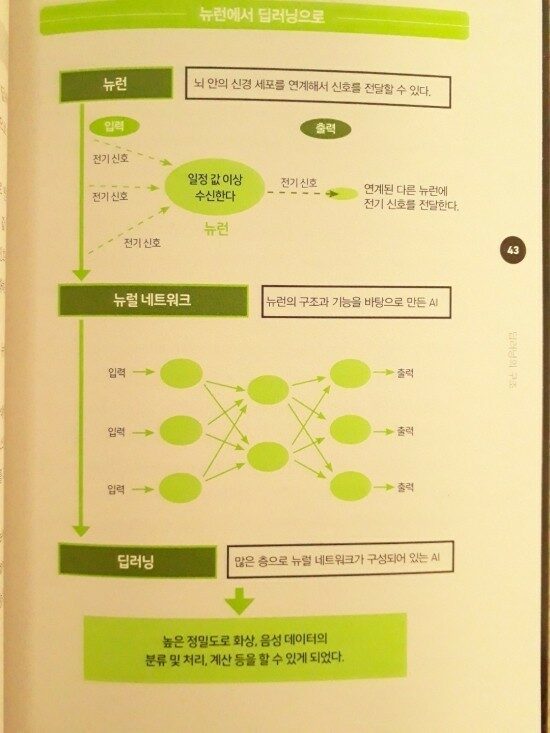 여기서 말하는 딥러닝 기술이란 컴퓨터가 사람처럼 생각하고 데이터를 분리, 처리, 계산하는 기술을 말한다. 머신러닝(기계학습)이 사람이 입력한 데이터를 기반으로 대량의 데이터를 정리, 분석, 최적화하여 기계 스스로 학습하고, 학습을 통해 프로그램된 이상의 것을 실행하는 것을 뜻한다면 딥러닝(심층학습)은 인간의 뉴런의 구조와 기능을 모델로 만든 AI로 사람이 학습할 데이터를 입력하지 않아도 스스로 학습하고 예측하는 머신러닝에서 발전된 형태의 인공지능을 뜻한다. 딥러닝은 본격적으로 사회에서 실용화가 진행되고 있고, 이 기술은 발전 중이라 앞으로 한층 더 발전할 것으로 기대되고 있다고 한다. 스스로 문제와 답을 학습하고 스스로 생각하고 분석하여 답을 낼 수 있다니 정말 이러다가 로봇의 반란이라는 공상영화에서나 나오던 일이 생겨도 이상하지 않겠다.
