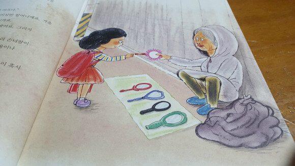 그러던 어느날 몇개의 거울을 팔고 있는 할머니를 마나게