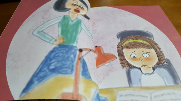윤지수도 학교에서와는 달리 울고 있습니다. 수학시험에서 겨우 3개 틀렸다고 엄마한테