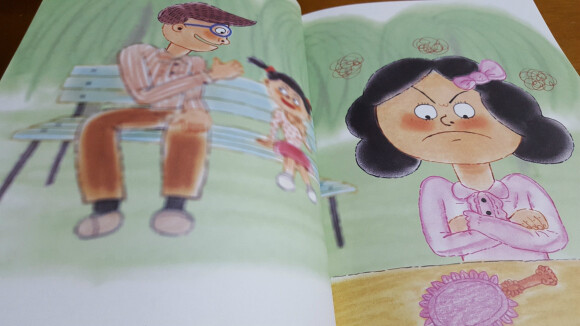 아빠는 다른 여자아이와 즐겁게 대화하고 있습니다. 속이 상한 하늘이는 흥! 칫!