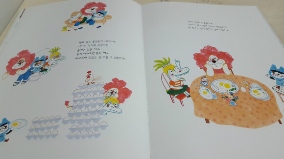 이 책에는 우선 사자와 악어 고양이가 낙시를 하러 갑니다. 그런데 오늘따라 큰 물고기가 잡히질않네요.