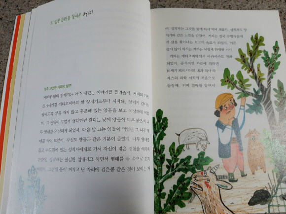 커피는 처음에 약재로 사용이 되었다네요. 커피열매를 달여서 환자들에게 먹여보았더니 기운을 돋우거나, 소변이 잘 나오게 하는 이뇨작용에 효과가 있다는 것이지요. 아마 커피의 카페인 성분때문이겠지요.
