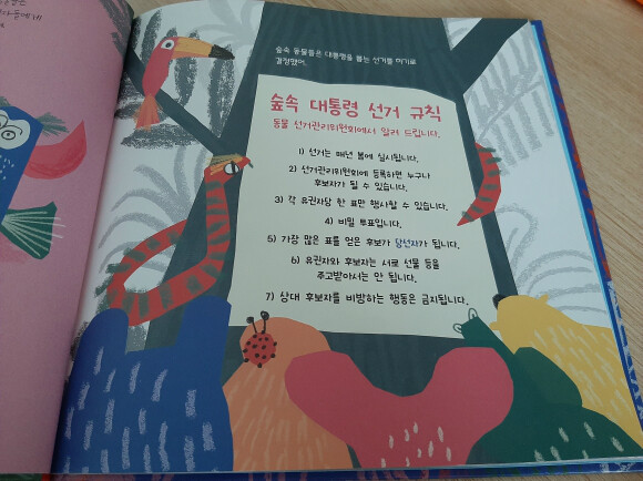 동물들의 선거를 통해 우리 꼬맹이들 민주주의에 한발짝 다가선 느낌입니다.