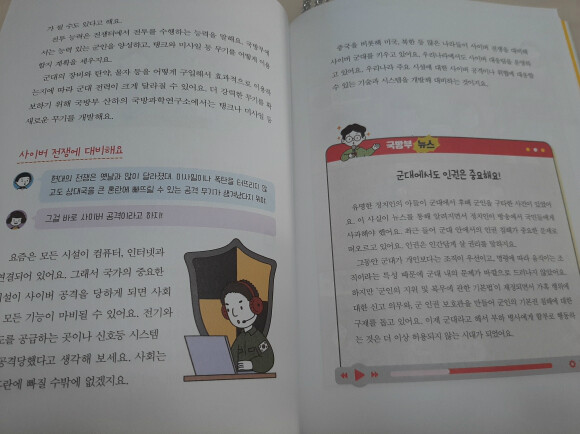 만화로 구성한 재미있는 이야기를 통해 국방부와 관련된 이야기를 시작하고 뒤에 구체적으로 그 기관이 하는 일들을 알려줍니다.
