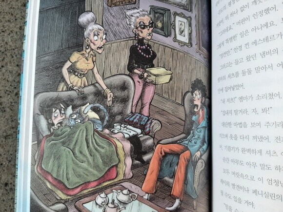 책 표지를 보니 무언가 익살스런 큰 일이 일어나고 있는것 같네요.