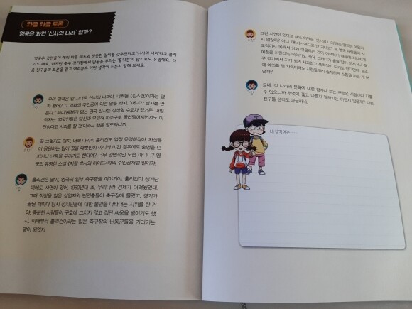 마지막으로 영국에 대한 일반적인 닉네임인 신사의 나라 영국.. 과연 영국은 신사의 나라일까라는 질문에 내 생각을 자유롭게 적어 볼 수 있는 활동이 있어 아이들의 상상력을 다시한번 끌어냅니다.