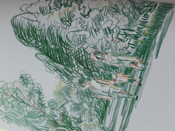 작가님은 색연필 드로잉으로 우리를 숲으로 초대하고 있습니다.
