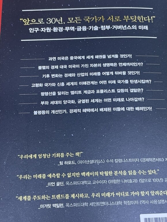 그러나 미래에는 어떤 국가가 패권국가로 성장하고, 어떤 지표들이 주요한 변수로 작용할 수 있을지 분석했다는 점에서 높은 점수를 주고 싶은 책이에요.