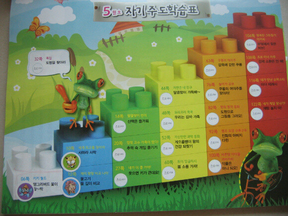 아이가 읽고 나서 스티커를 붙여요 그리고 그 다음에 읽을 부분을 체크하더군요