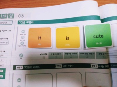처음에는 카드의 도움을 받으면 좋겠지만 회차가 거듭될수록 카드 없이도 문장을 자연스레 만들 수 있게 될 것 같다. 단어가 적힌 카드를 직접 이리저리 배치해보고, 틀려도보고, 맞혀도 보면서 자연스럽게 영어의 문장 구조를 익힐 수 있도록 구성되어 있어 시각적, 촉각적으로 학습할 수 있다. 처음 영어 문장을 접하게 될 친구들에게 적극적으로 추천한다.