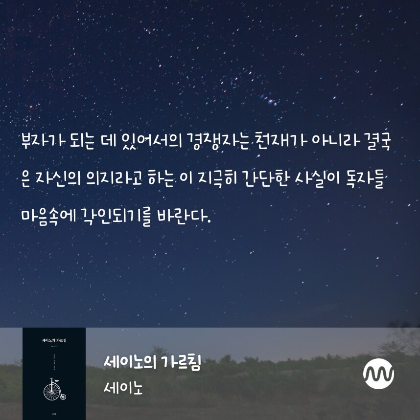 나는 천재가 아니어서 즉흥적으로는 글을 쓰지 못하기 때문에 내가 이곳에 올린 글들을 ‘세이노가 하룻밤에 쓴 글’이라고 생각하면 안 된다. 모든 글에는 내가 살아온 세월이 담겨 있음을 잊지 말아라. - < 세이노의 가르침, 세이노 > 중에서
