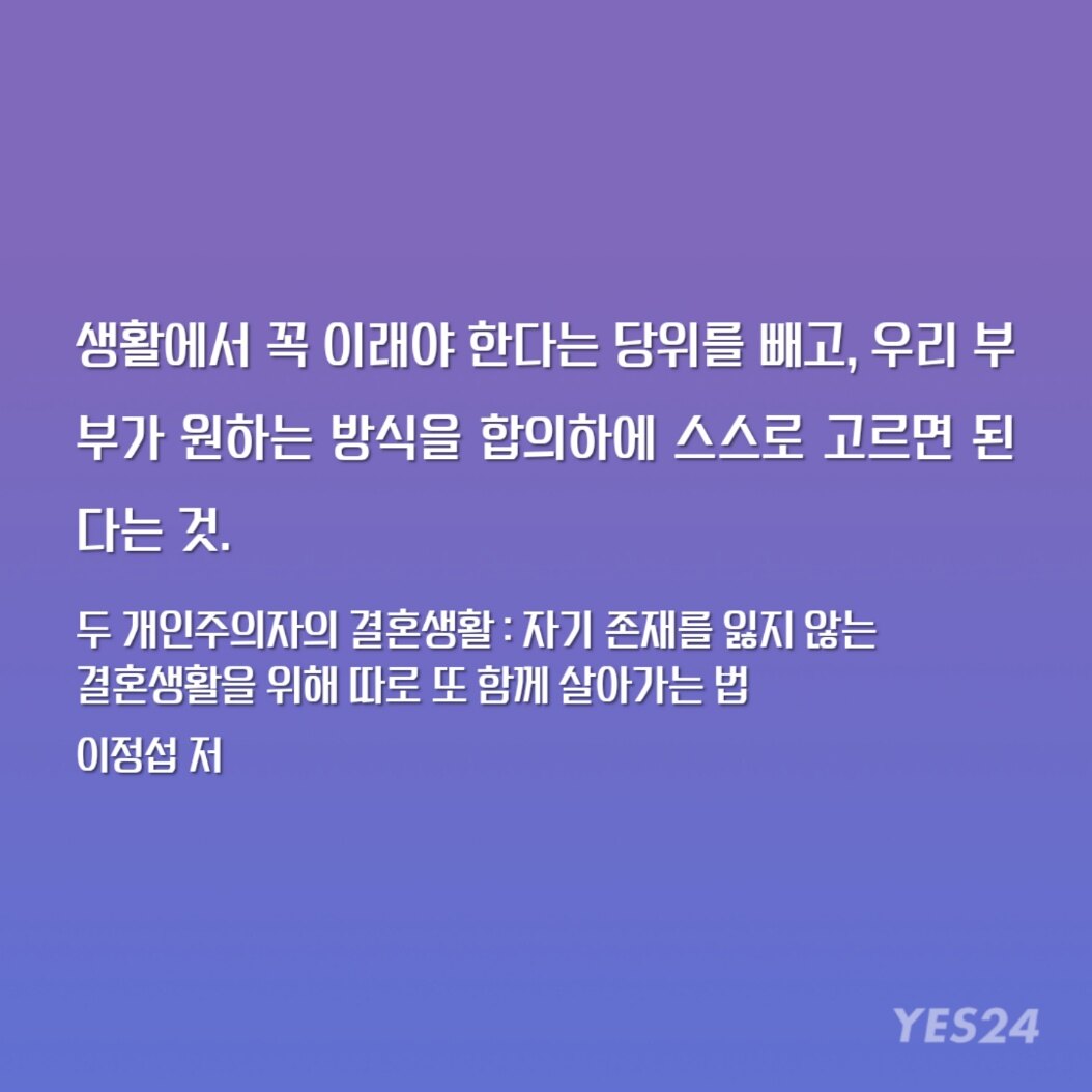 일상이 행복한 남편과 일상이 행복한 아내, 두 사람이 있을 때 결혼생활이 행복한 것이다.