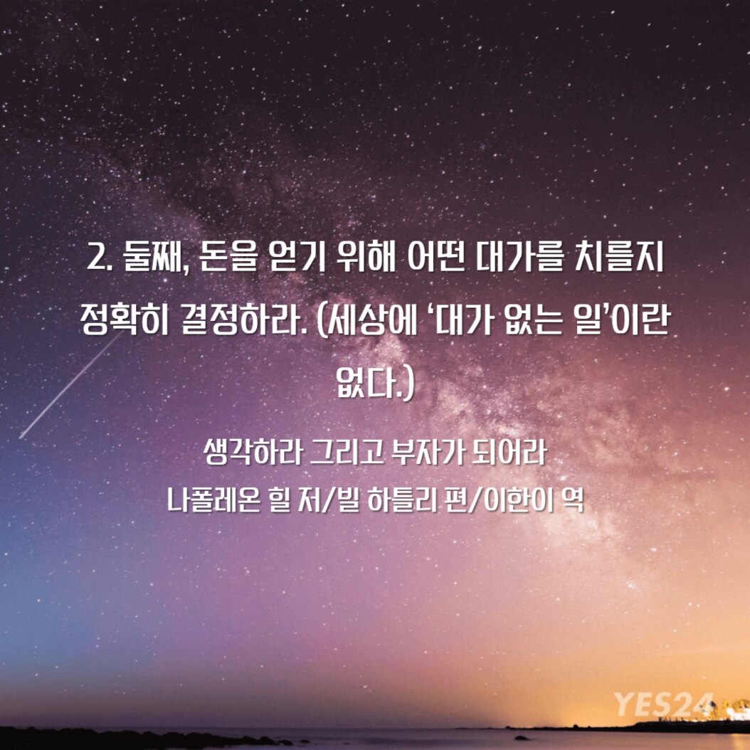 2. 둘째, 돈을 얻기 위해 어떤 대가를 치를지 정확히 결정하라. (세상에 ‘대가 없는 일’이란 없다.)