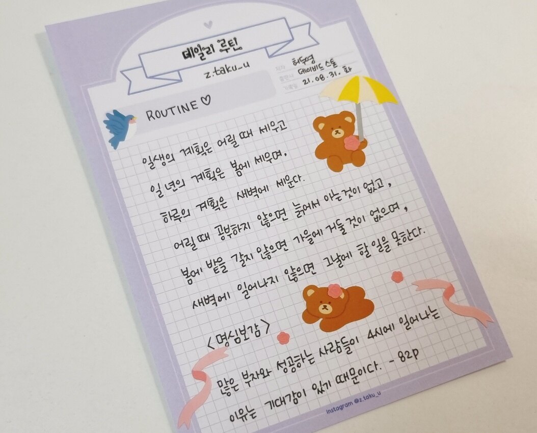 루틴은 시간을 후회 없이 사는 지혜요, 나를 사랑하는 방법이다.