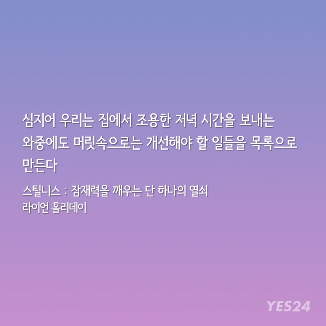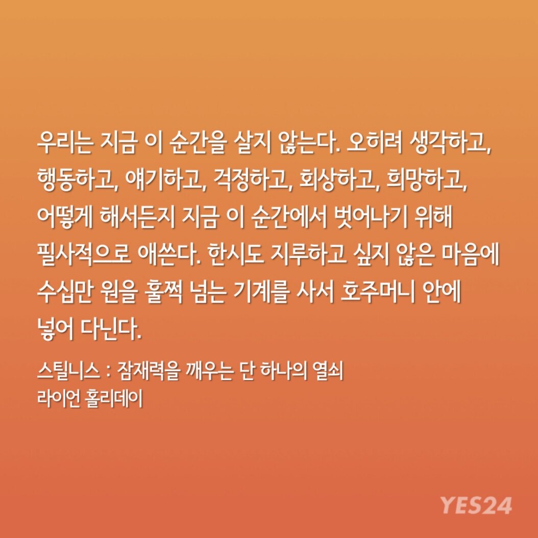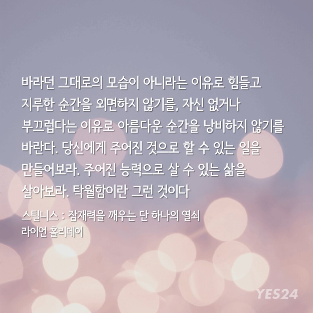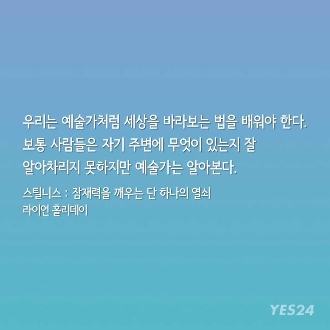 "인생의 규칙이 별로 없는 내게 한 가지 절대 깨지 않는 규칙이 있다. 그건 라이언 홀리데이의 책이 나오면 손에 넣는 대로 즉시 읽는 것이다."