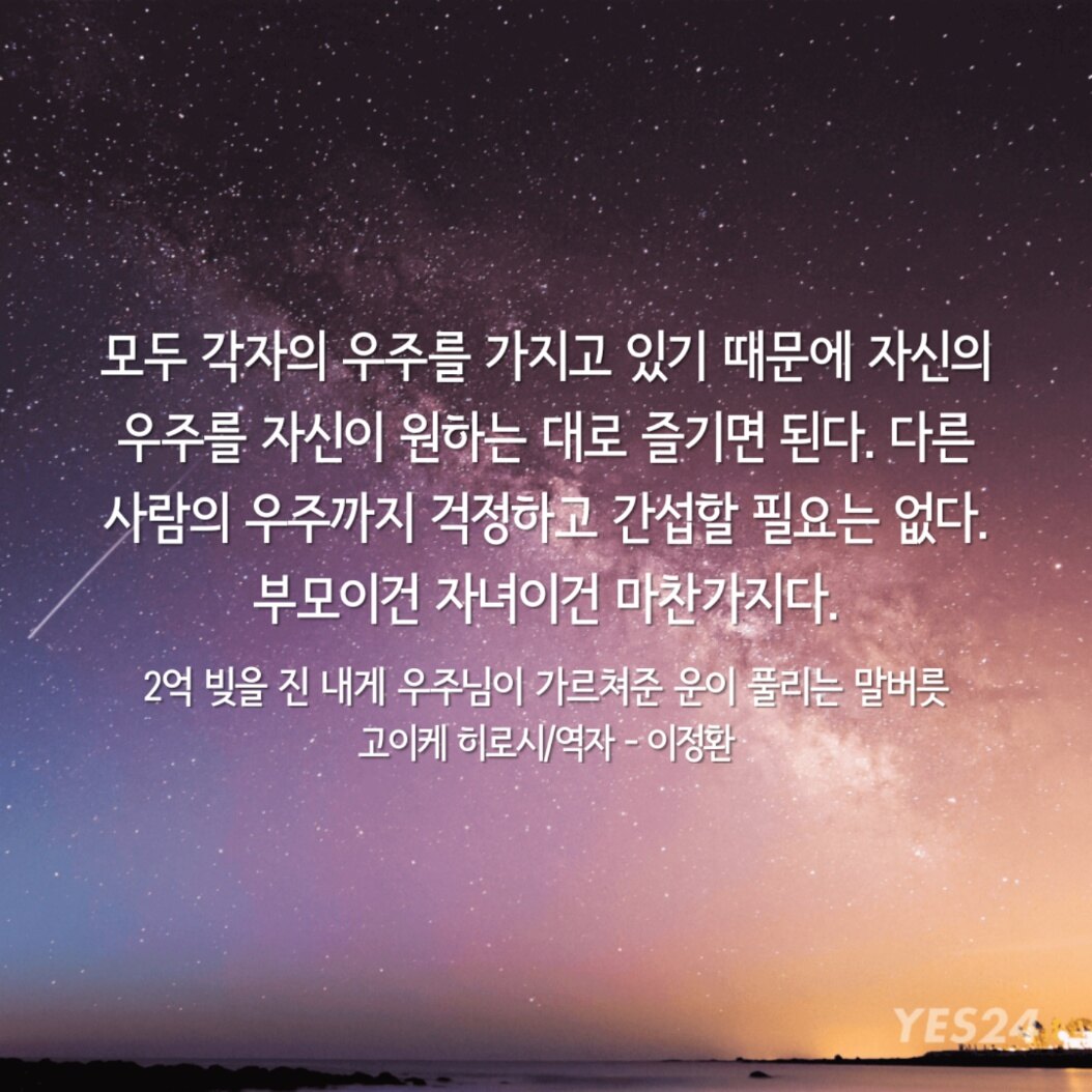 "우주는 모두가 행복해지도록 구성되어 있으니까 나는 걱정 없어!"