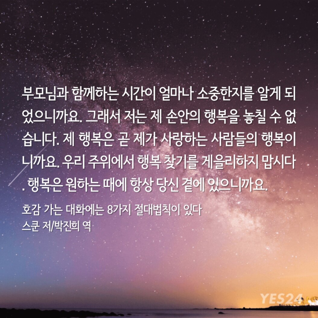 그러니까 자신을 행복하게 하는 사람은 주변 사람들도 행복하게 만드는 거야. 주변 사람들을 행복하게 할 수 있는 사람은 본인도 행복하지. 그것이 바로 우주의 진리야.