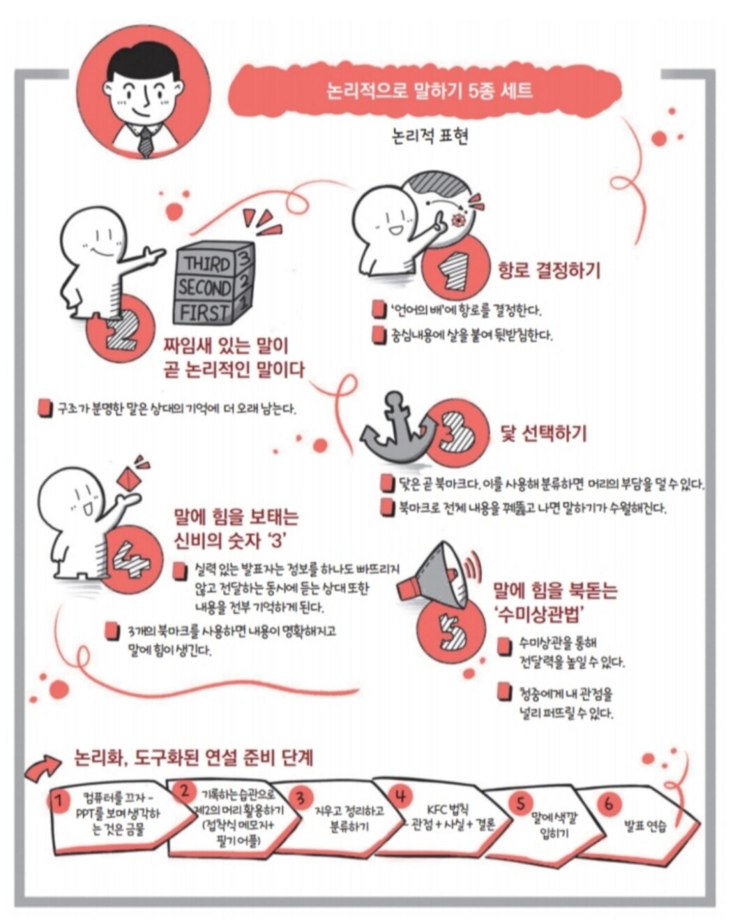 즉, 내용을 분류할 때 7개 안에서 개수를 조절하는 것이 좋다. 하지만 즉흥적인 발표를 할 땐 3개 정도 잡을 것을 추천한다.