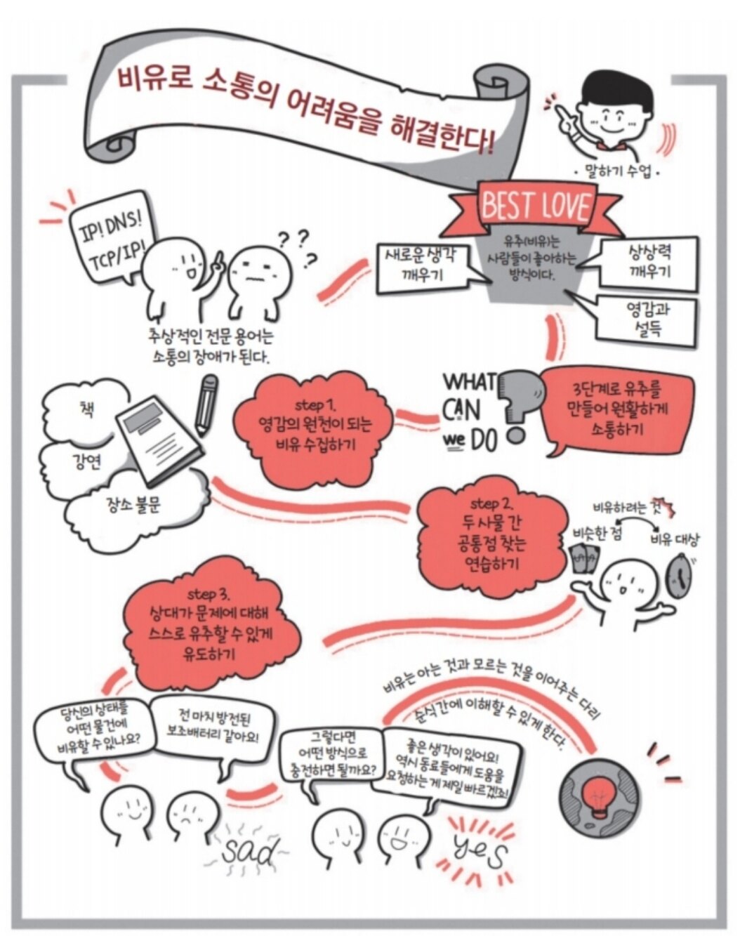 이렇게 서로 다른 두 사물이 공통점으로 이어질 때 상대방의 단단히 꼬인 생각을 풀 수 있다