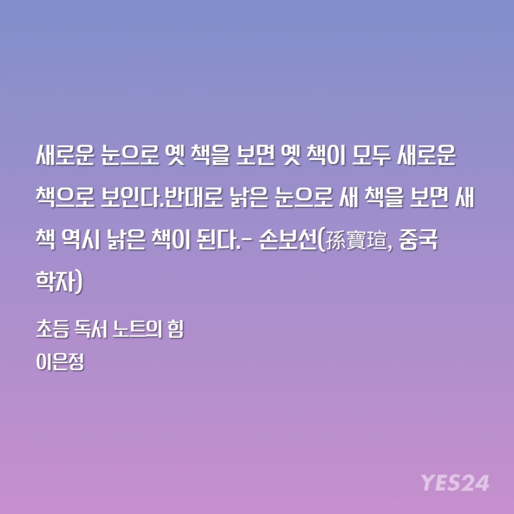 새로운 눈으로 옛 책을 보면 옛 책이 모두 새로운 책으로 보인다.반대로 낡은 눈으로 새 책을 보면 새 책 역시 낡은 책이 된다.- 손보선(孫寶瑄, 중국 학자)
