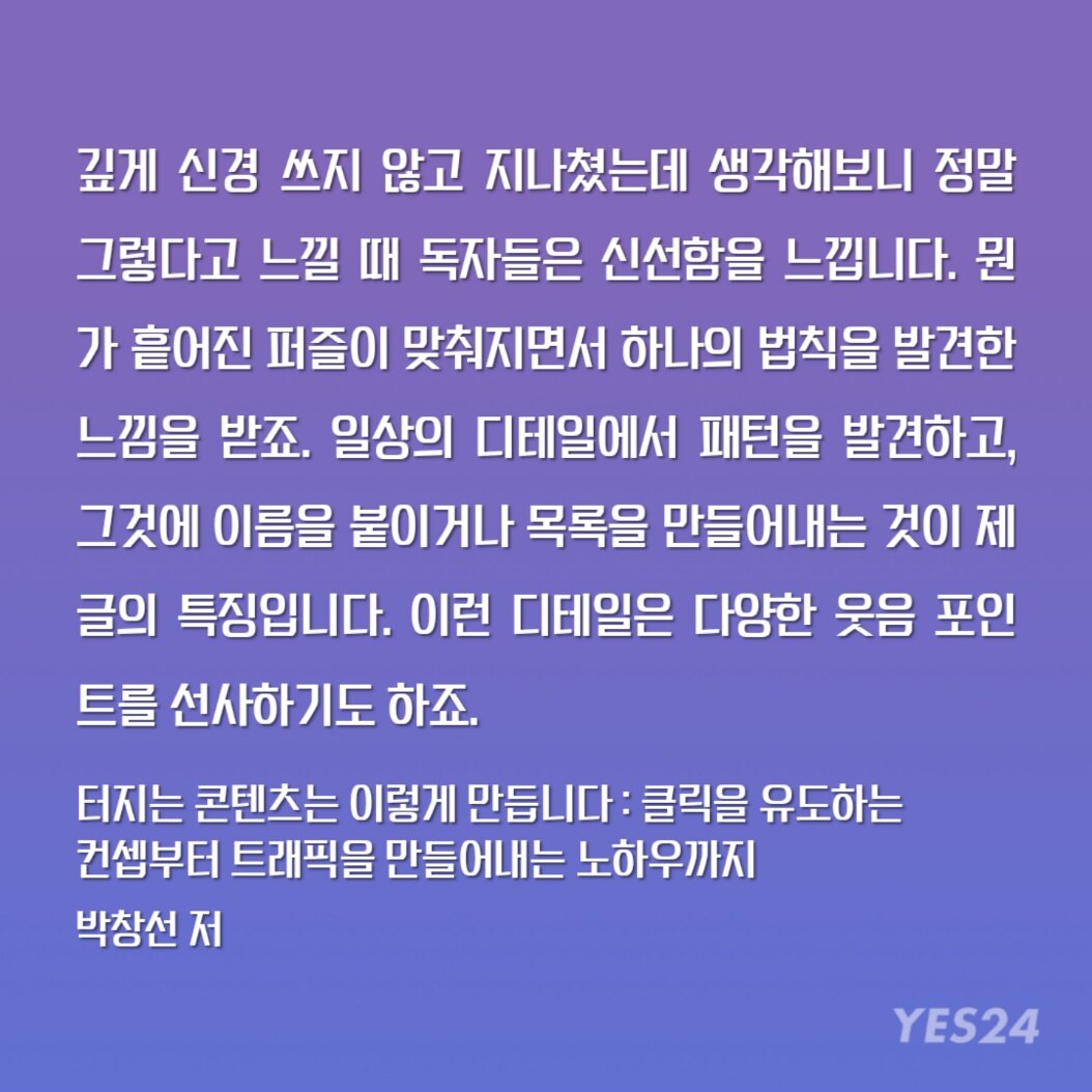 사람들은 콘텐츠에게 가르침을 받고 싶어 하지 않습니다. 아무리 옳은 소리라도 잔소리처럼 들리는 콘텐츠를 소비하진 않죠. 기분만 나빠지니까요.