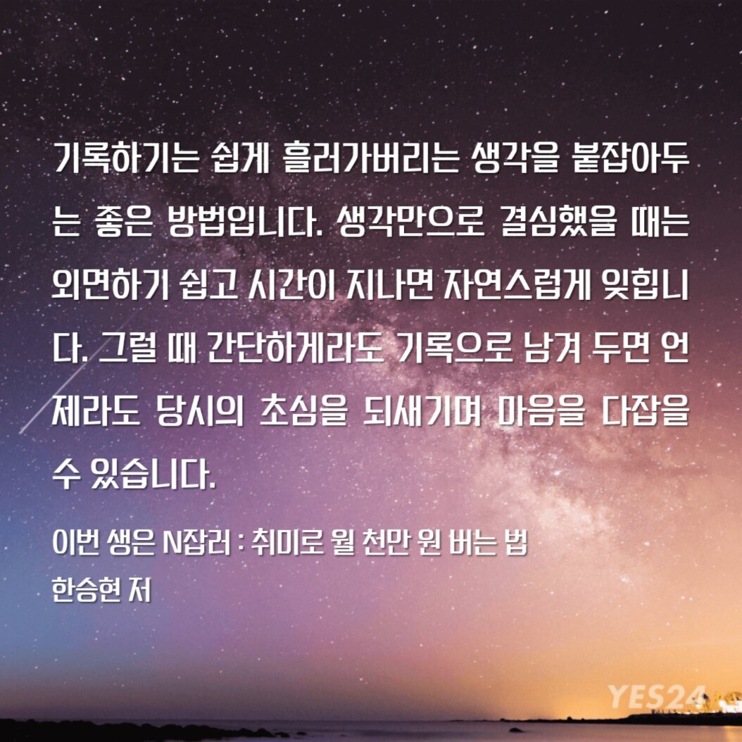 그럴 때 간단하게라도 기록으로 남겨 두면 언제라도 당시의 초심을 되새기며 마음을 다잡을 수 있습니다.