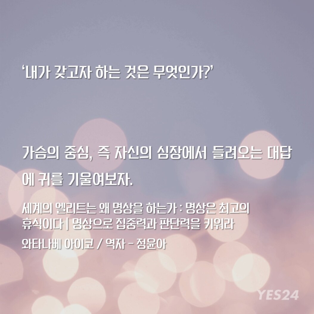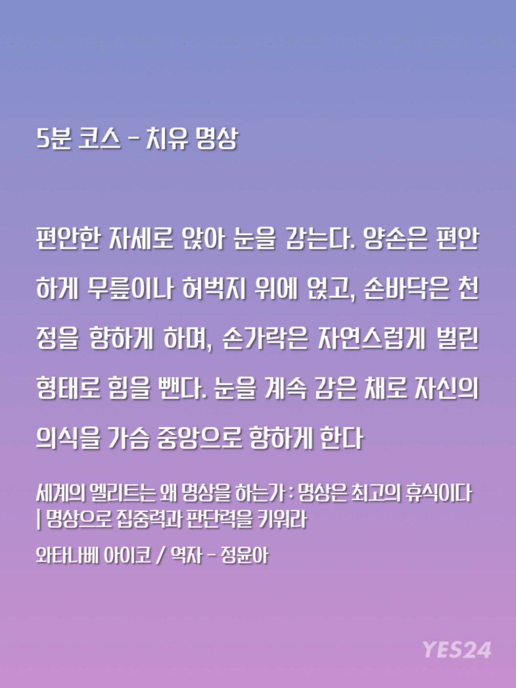 ‘항상 활기가 차 있으려면 마음을 정화하고 소화력을 높이는 의식을 가져야 한다. 하지만 주변에서 무슨 일이 일어나는지 사사건건 신경 쓰일 때, 마음의 휴식이나 충전에 가장 효과적인 것이 바로 명상이다.’
