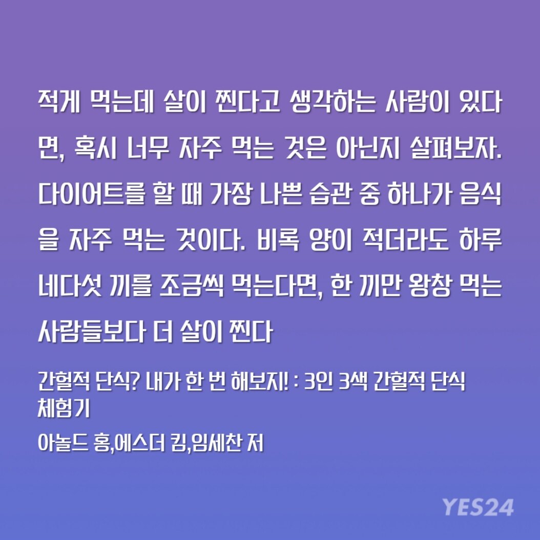 음식을 먹을 때마다 살이 찌게 하는 호르몬인 인슐린이 자극된답니다. 그러니 다이어터라면 적은 양을 여러 번 먹기보다는 충분한 양을 횟수를 줄여서 먹어야 합니다.