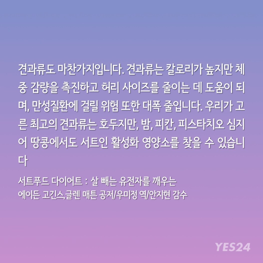 여러분에게 잘 맞는 다이어트에 서트푸드를 추가하면 분명 더 좋은 결과를 얻게 될 겁니다.