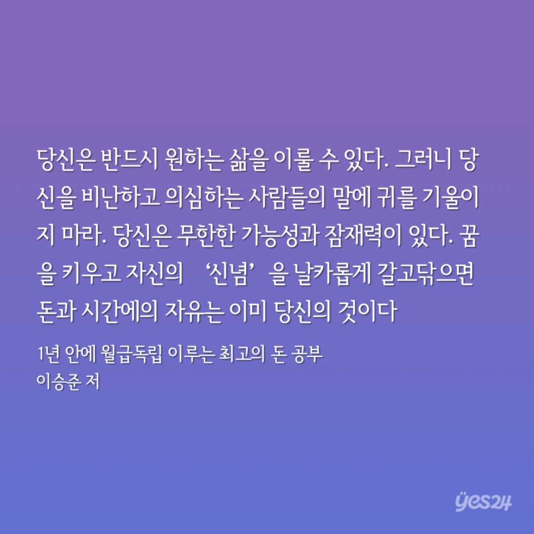 꿈을 키우고 자신의 ‘신념’을 날카롭게 갈고닦으면 돈과 시간에의 자유는 이미 당신의 것이다.