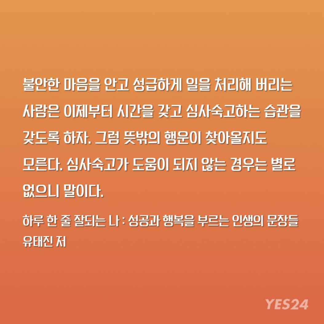 나를 쉽게 주저 앉혀버리기도 하고, 또 전력질주하게 만들기도 하는 나의 ‘마음’에 주목하기를 바란다. 그 목소리를 들어야 주저앉기보다 앞으로 나아가게 만든다.