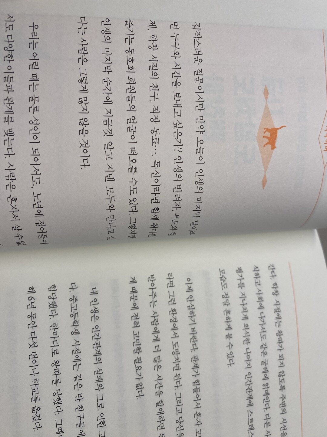 여러 장 중에 가장 심도있게 읽었던 곳은 사귈 사람은 스스로 선택할 것이었는데 인생을 살다보면 정말 많은 인연들이 왔다간다 끌려다니지 않으려면 내 주관대로 사귀어야 한다고 생각한다. 멀리할 사람과 가까이할 사람 모두 자신이 정하는 것이니까. 슬기롭게 인간관계를 설정하는 방법을 배운 것 같다.