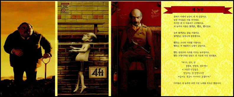 그리고 가축편의 스토리는 브레맨 음악대였어요.