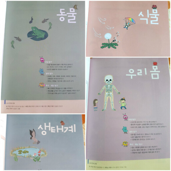 즐깨감 과학탐구 2는 동물, 식물, 생태계, 우리몸으로 구성되어 있어요