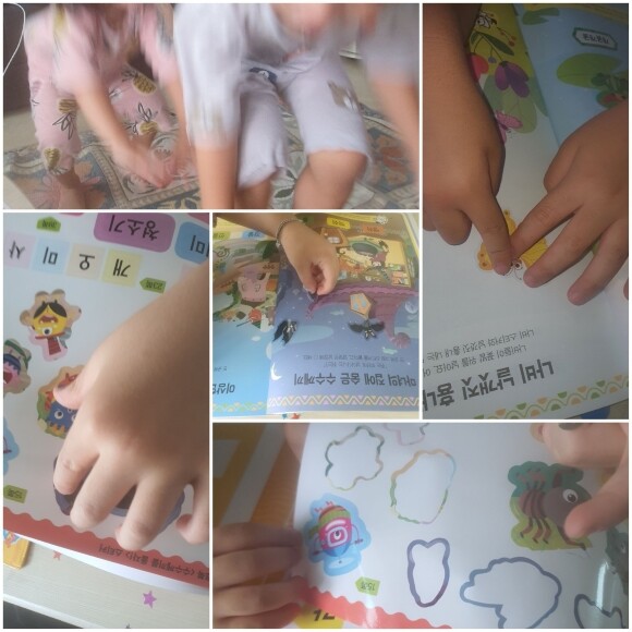 이제막 읽기 시작한 광복이라 문제를 읽게 해주고 그에따르게 표현및 스티커를 붙이게 해보았어요