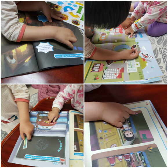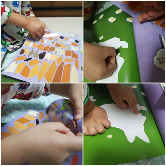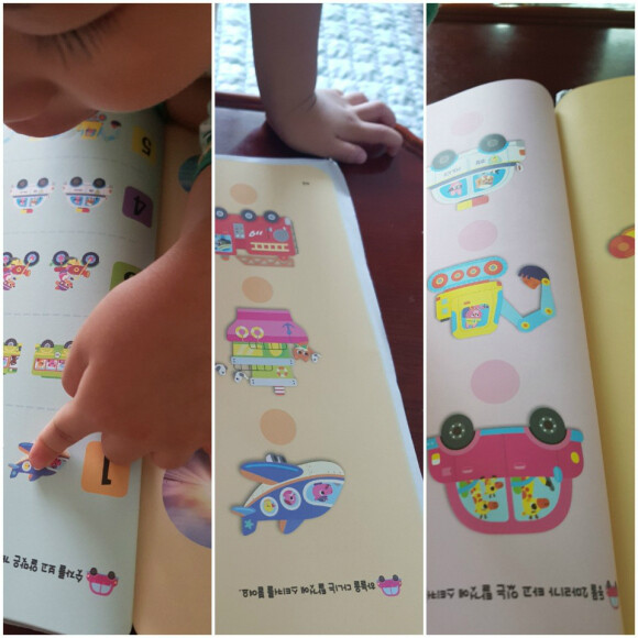 (동생도 좋아하는 스티커... 스티커로 둘이 싸워 결국은 감추어는데 너무 울어버려서 다시 꺼내켜 싸우면 버린다고 협박도 ㅎ) 둘이 스티커를 떼고 붙이면서 소근육 운동을 열씨미 하고 있어서 더욱 좋았땁니다.