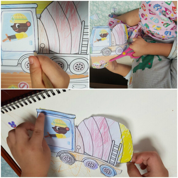첫 스티커 색칠 탈것을 하면서 혼자서 하는 놀이에 빠지고 TV를 보는 시간을 줄이기도 했던 이시간들...