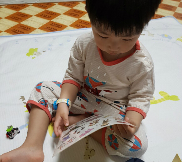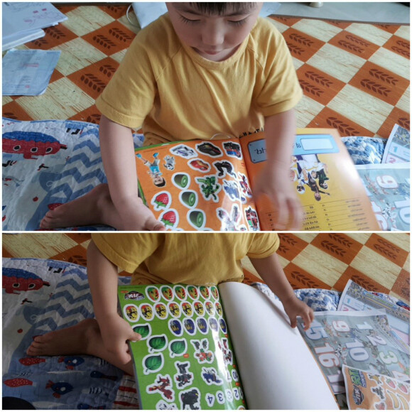 책을 펼치는 순간 엄마도 자신감이 업, 울광복이는 스티커에 관심이 업