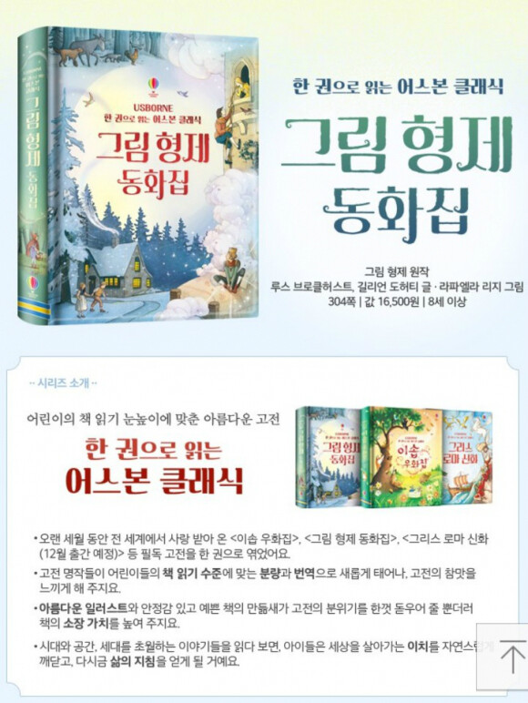 여러 명작 전집들이 많지만 어스본의 그림형제 동화집을 소개해 드려요