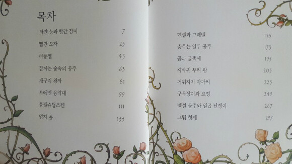 그림형제 동화집은 표지가 두꺼워요 스펀지가 들어 잇는거 같아 ... 급 엄마의 베개가 되어 버리지는 않을지 ㅎㅎㅎ